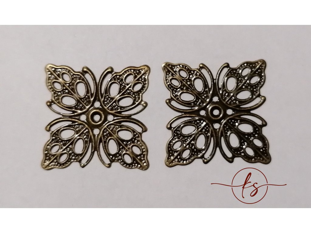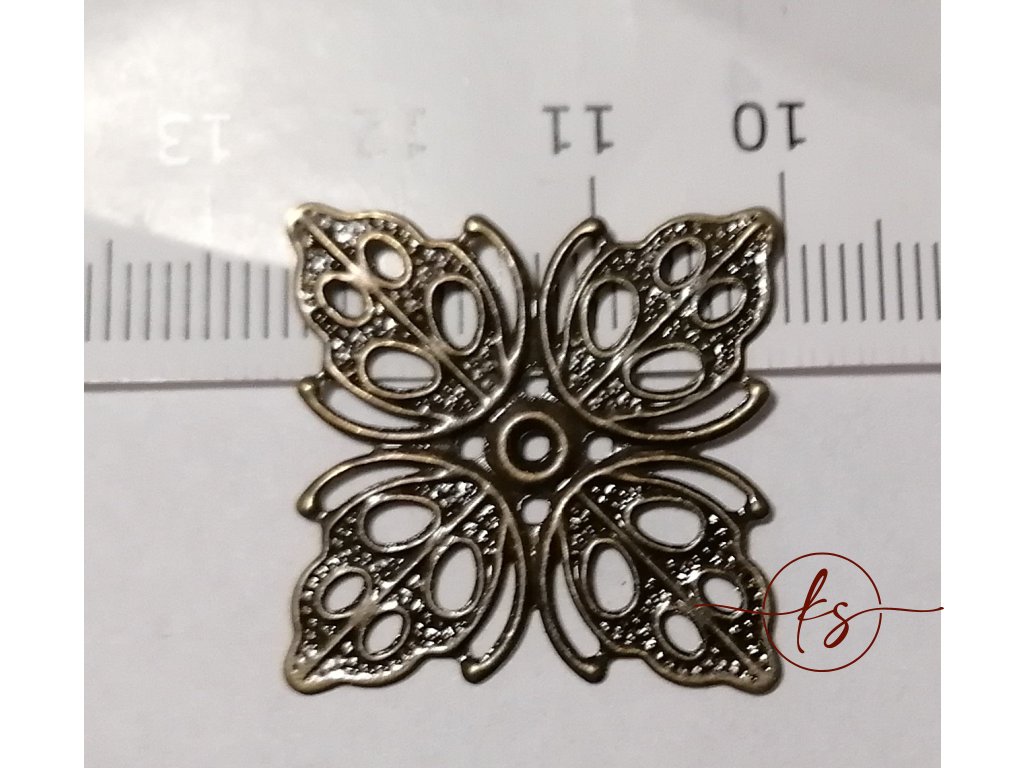 Filigrán čtvercový kovový antický 26x26 mm, bronz