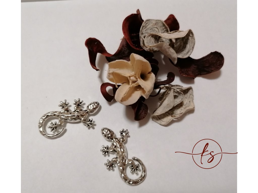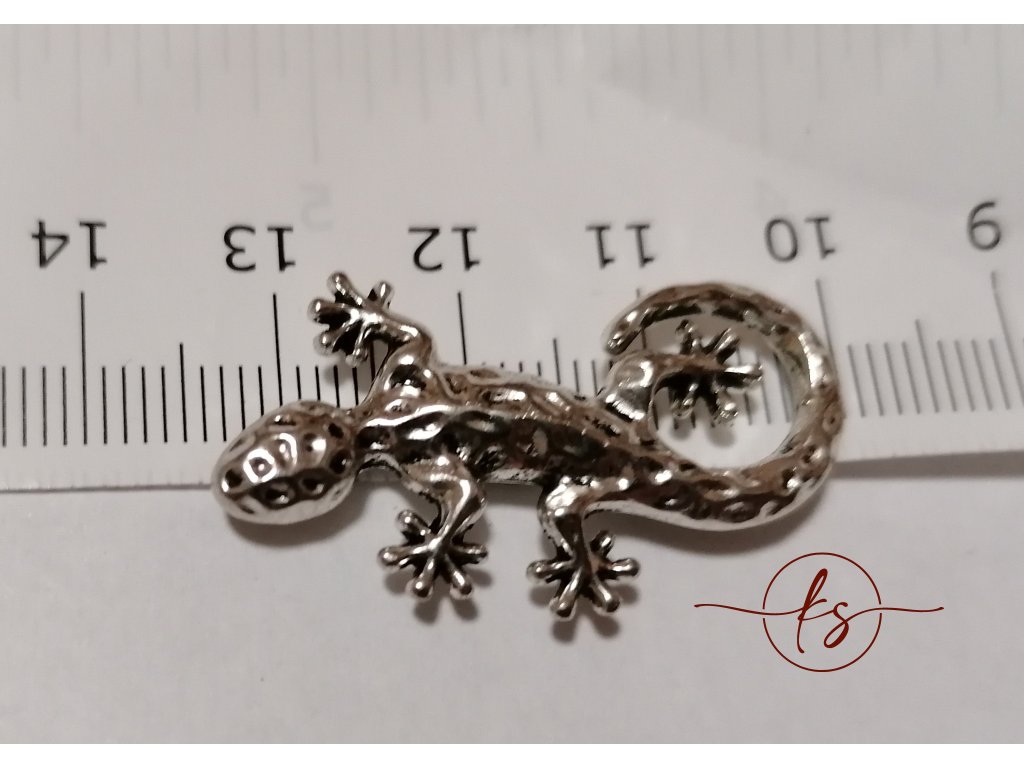 Filigrán ještěrka masivní kovový 34×19 mm, antická stříbrná