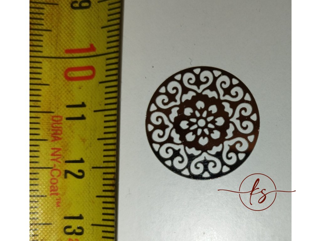 Pevný kovový filigrán z nerezové oceli, kulatý se srdíčky; průměr: 22 mm; barva: stříbrná