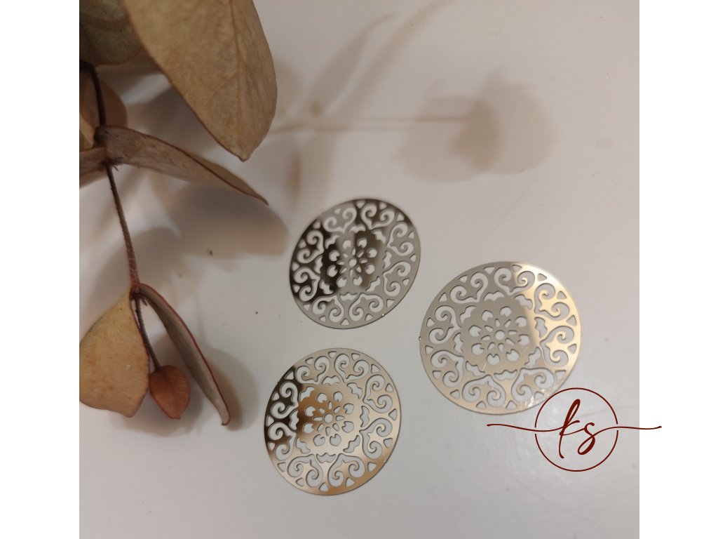 Filigrán / kovový výřez kulatý se srdíčky 22 mm, nerezová ocel