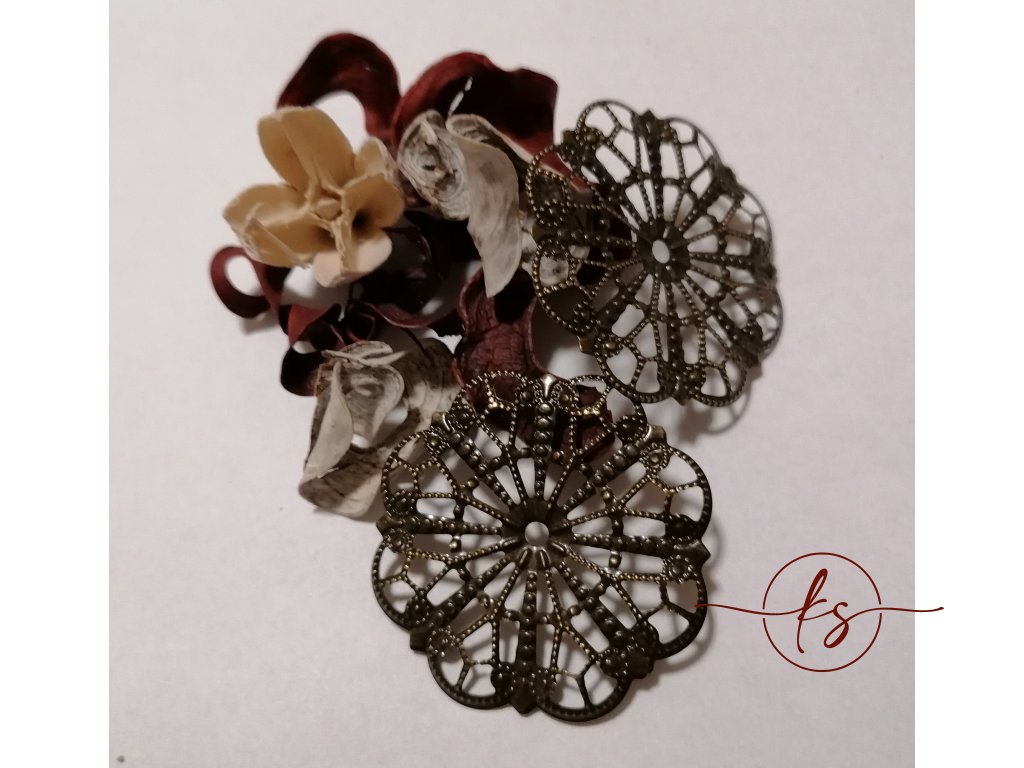 Filigrán / kovový výřez květinový 41 mm, bronz
