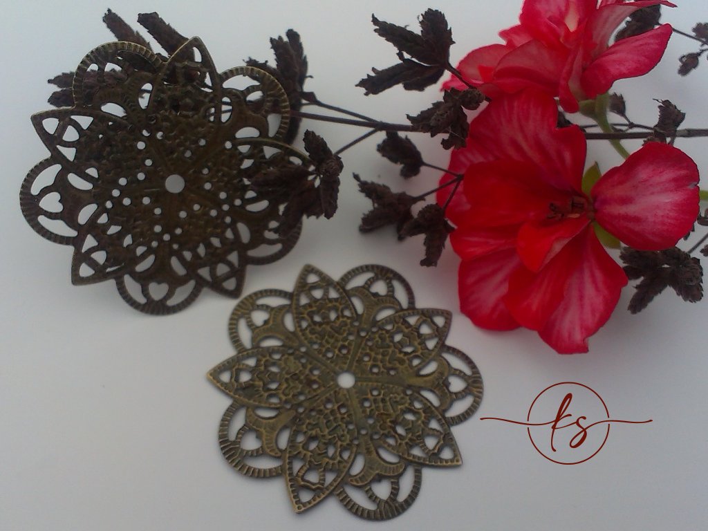 Filigrán / kovový výřez květinový 46 mm, barva: bronz, stříbrná