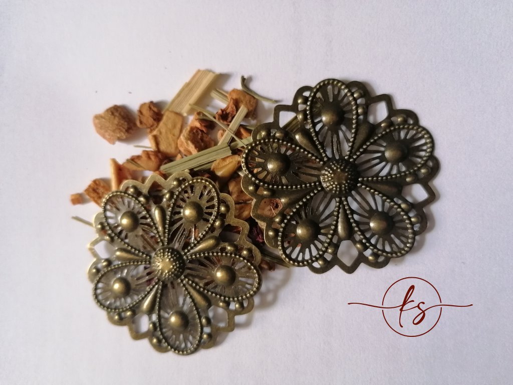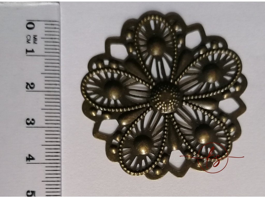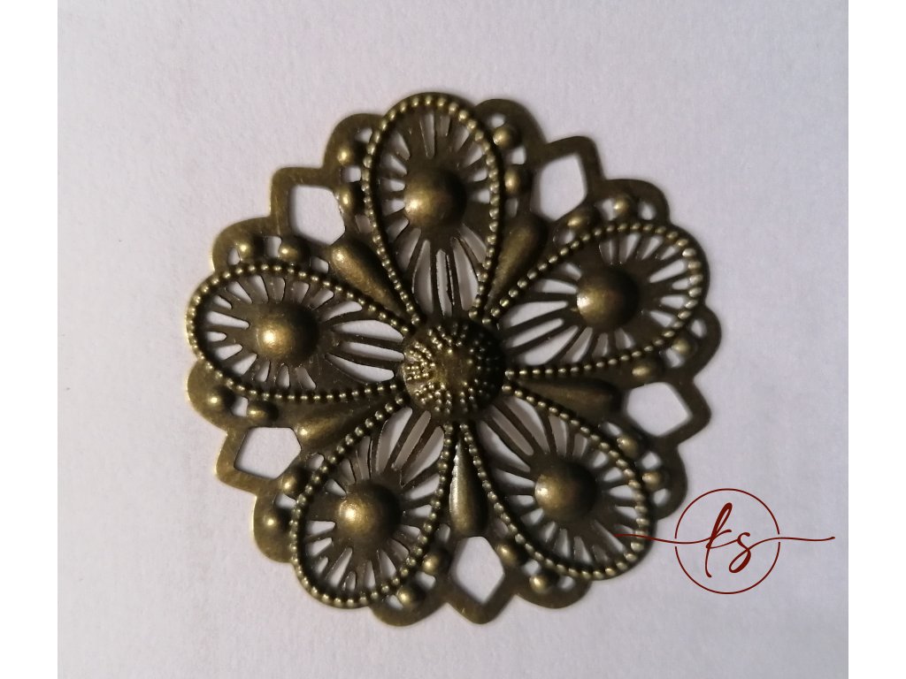 Filigrán / kovový výřez květinový 48 mm, bronz