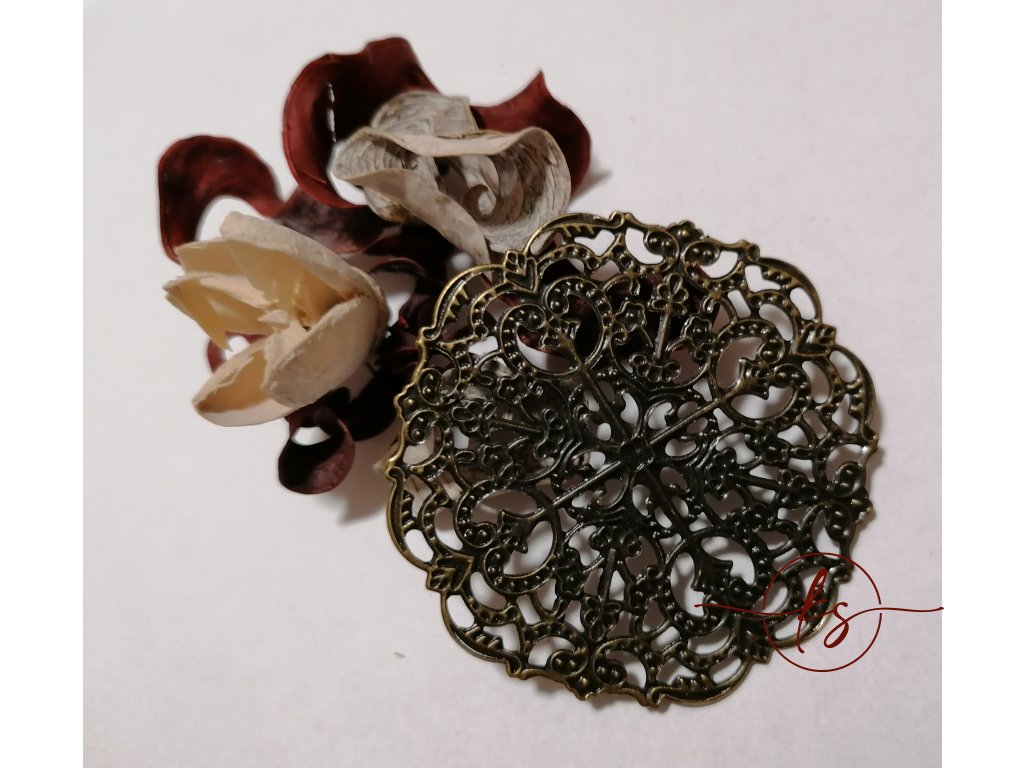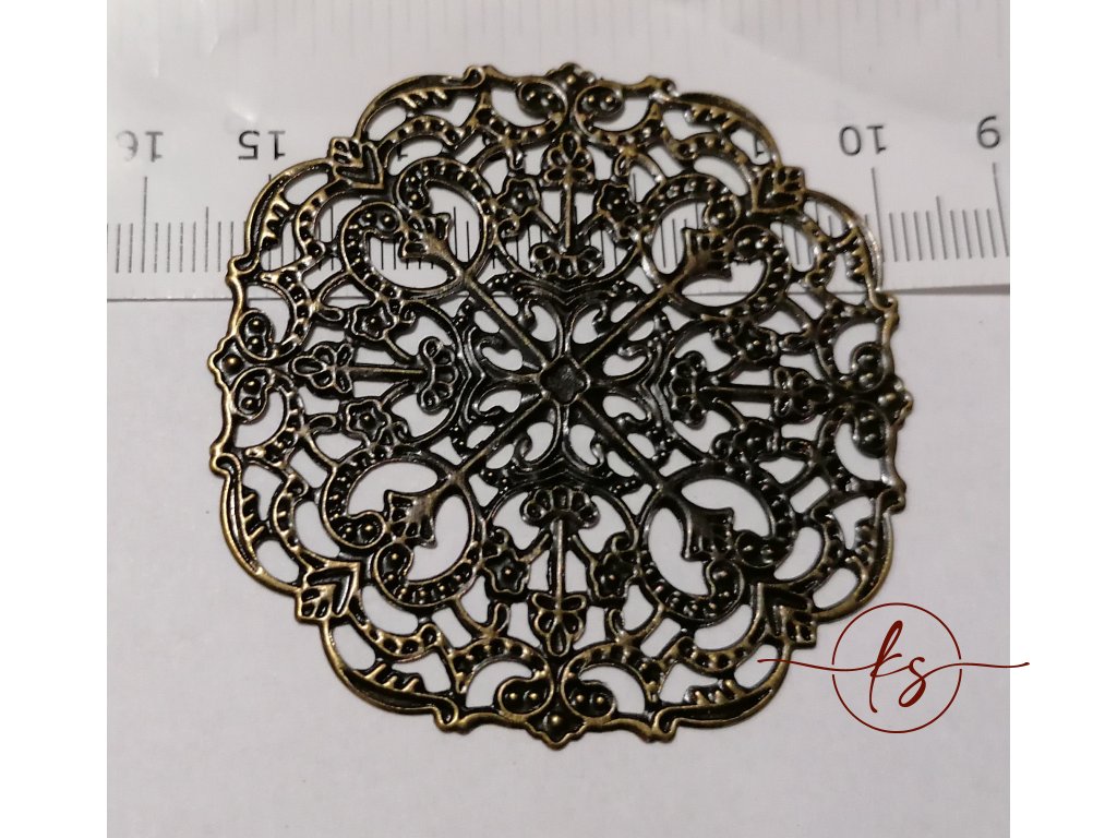 Filigrán / kovový výřez květinový 56 mm, bronz