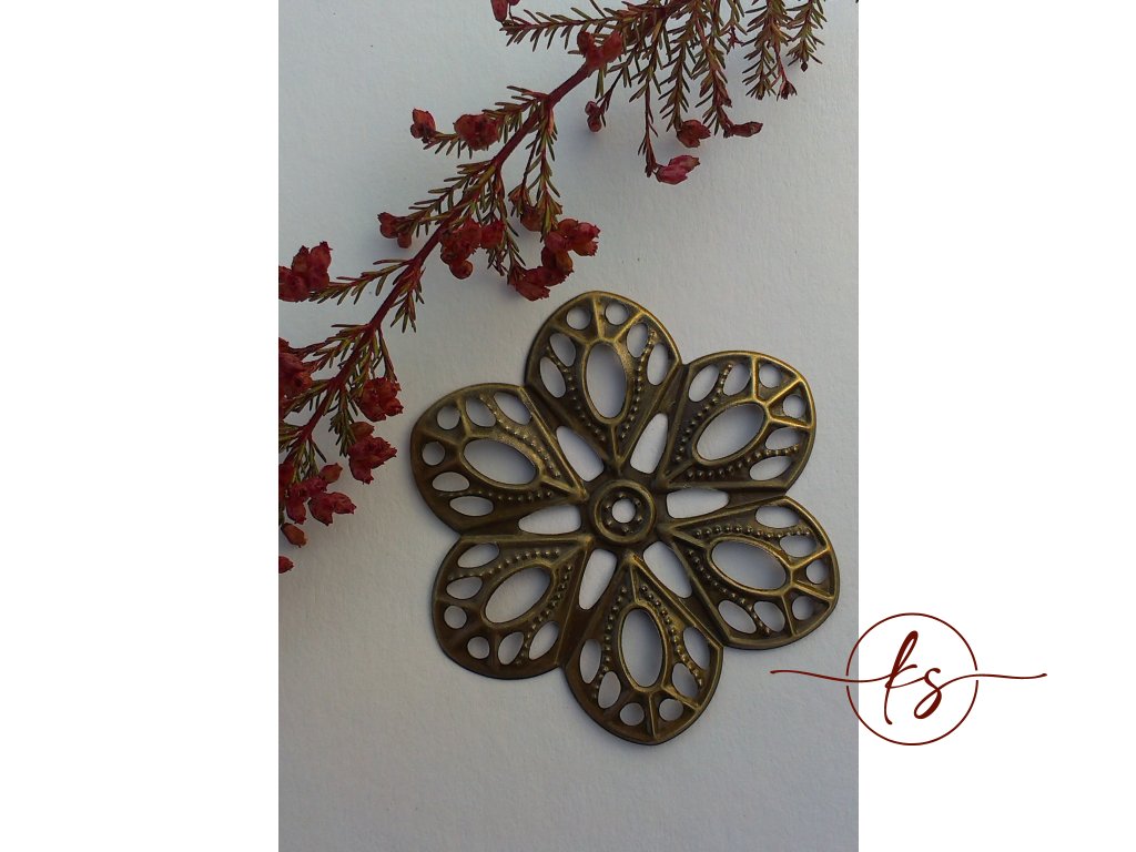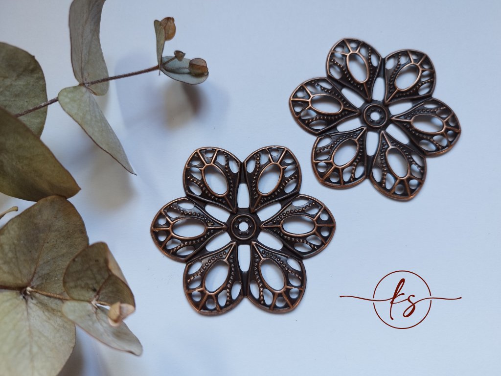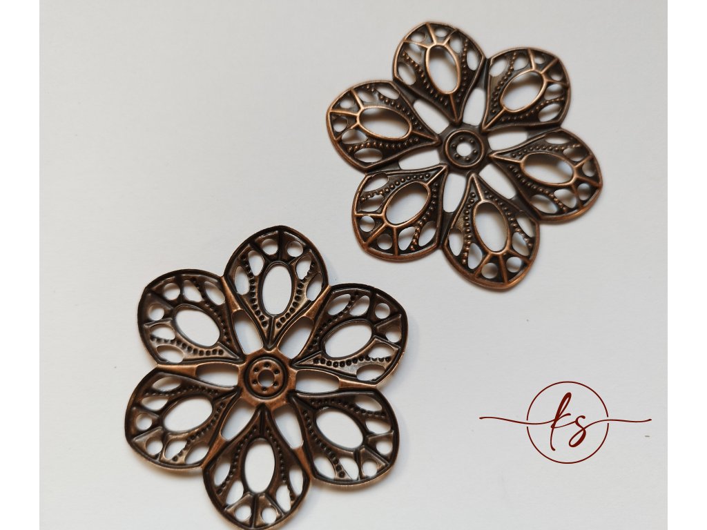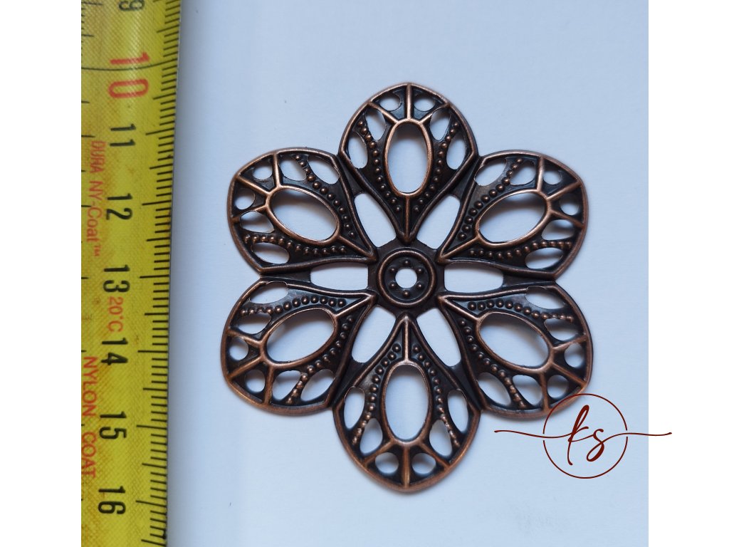 Filigrán / kovový výřez květinový 60x54 mm, v barvách: bronz a měď