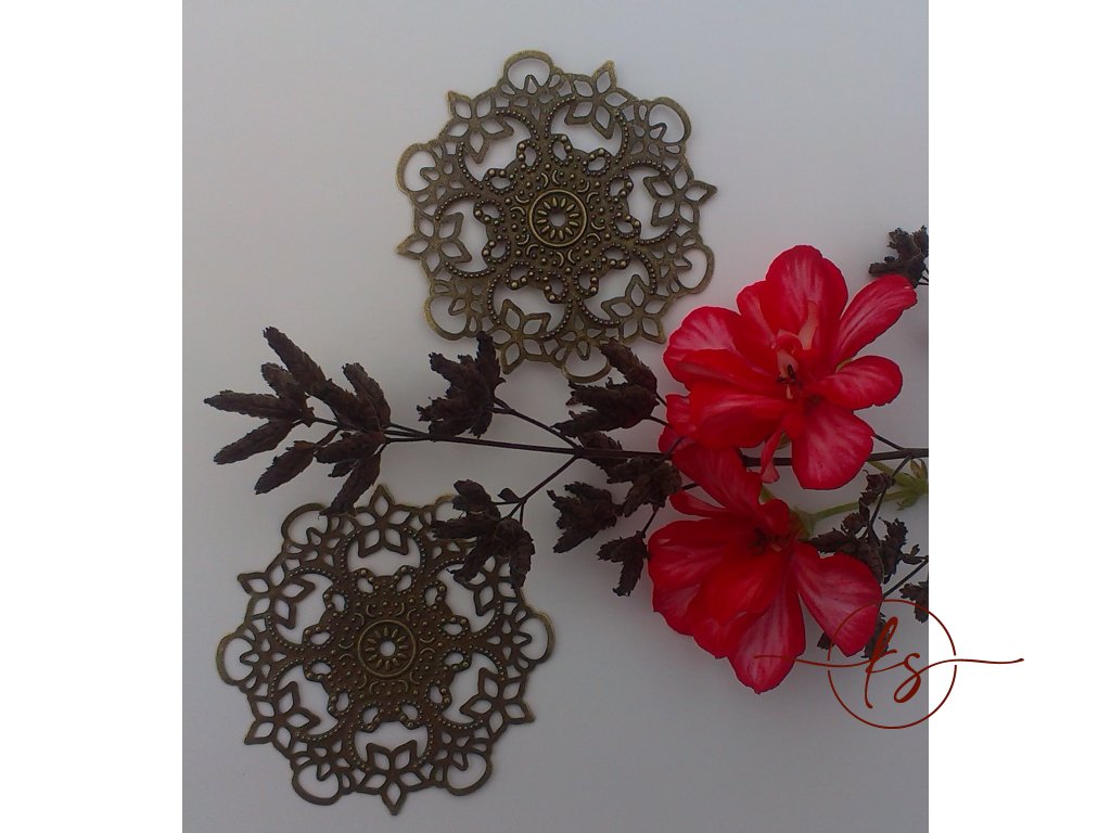 Filigrán / kovový výřez květinový ozdobný 55 mm, bronz
