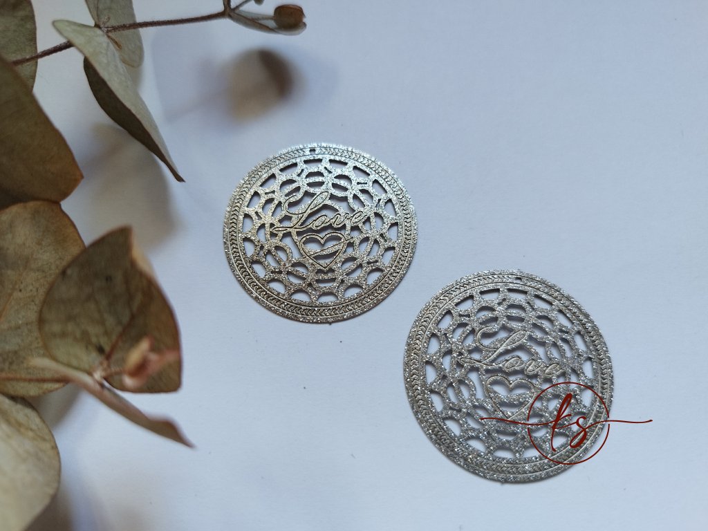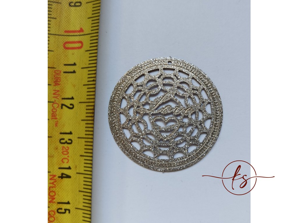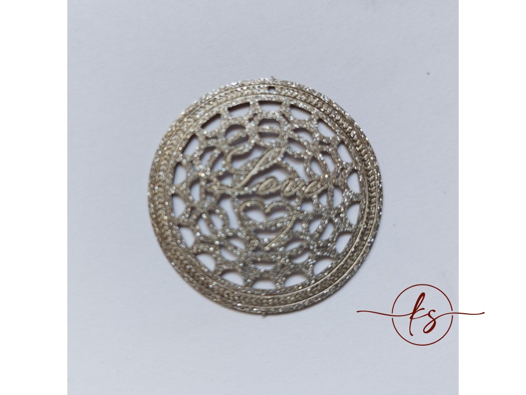 Filigrán / kovový výřez LOVE 36 mm, stříbrný