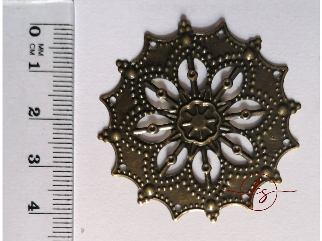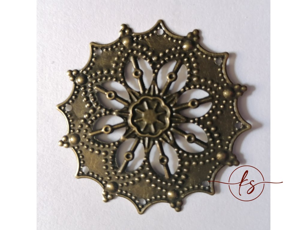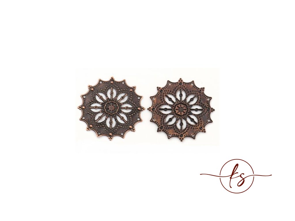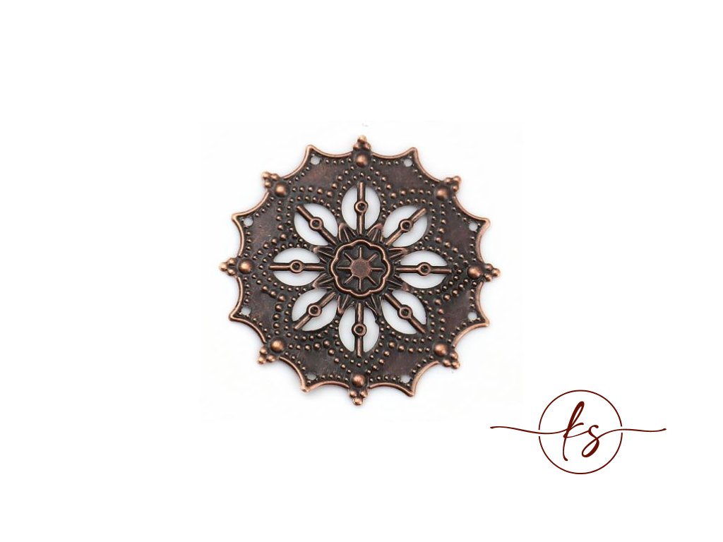 Filigrán kulatý antický květinový 43 mm, barvy: bronz, měď a stříbrná