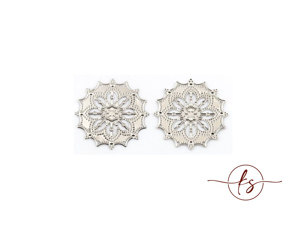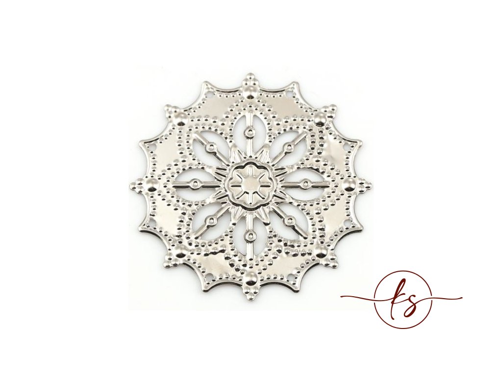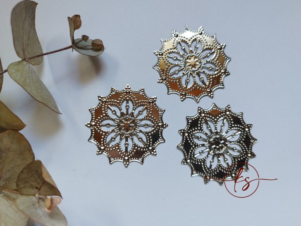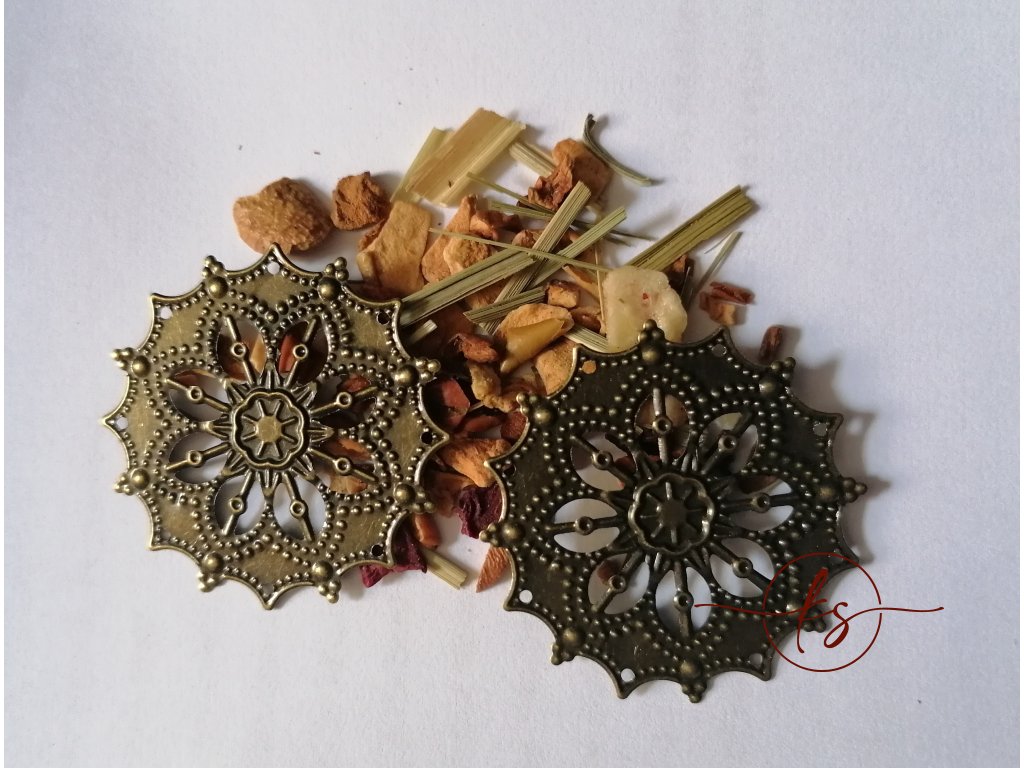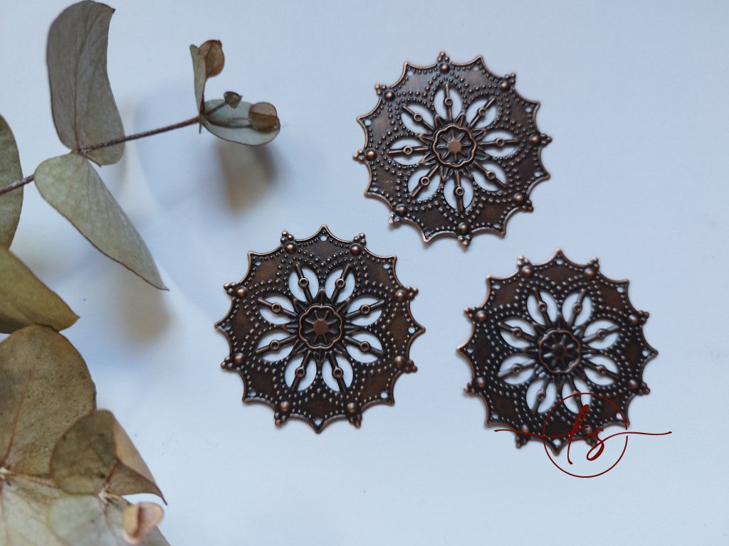 Filigrán kulatý antický květinový 43 mm, barvy: bronz, měď a stříbrná