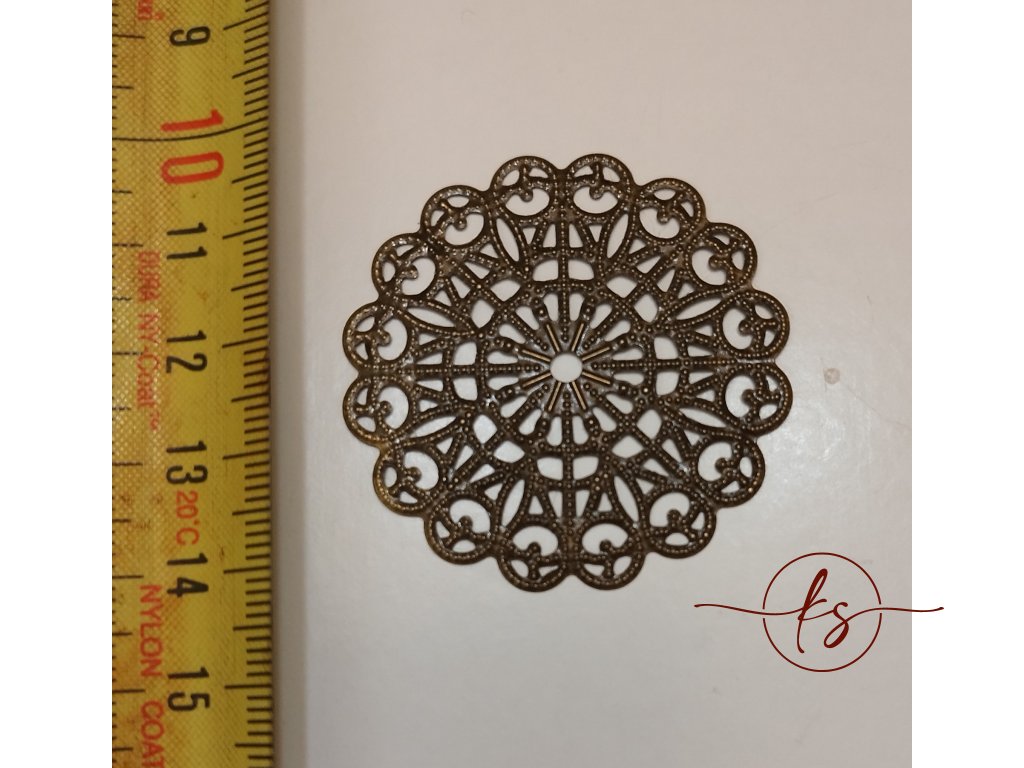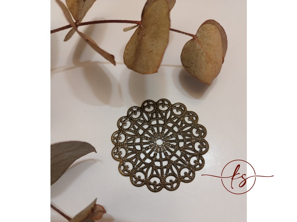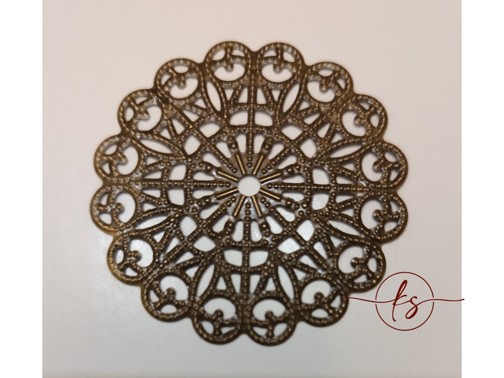 Filigrán kulatý antický vyřezávaný 43 mm, bronz