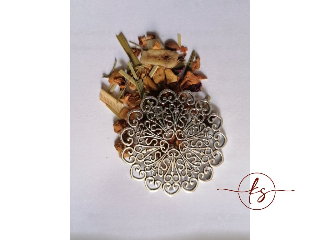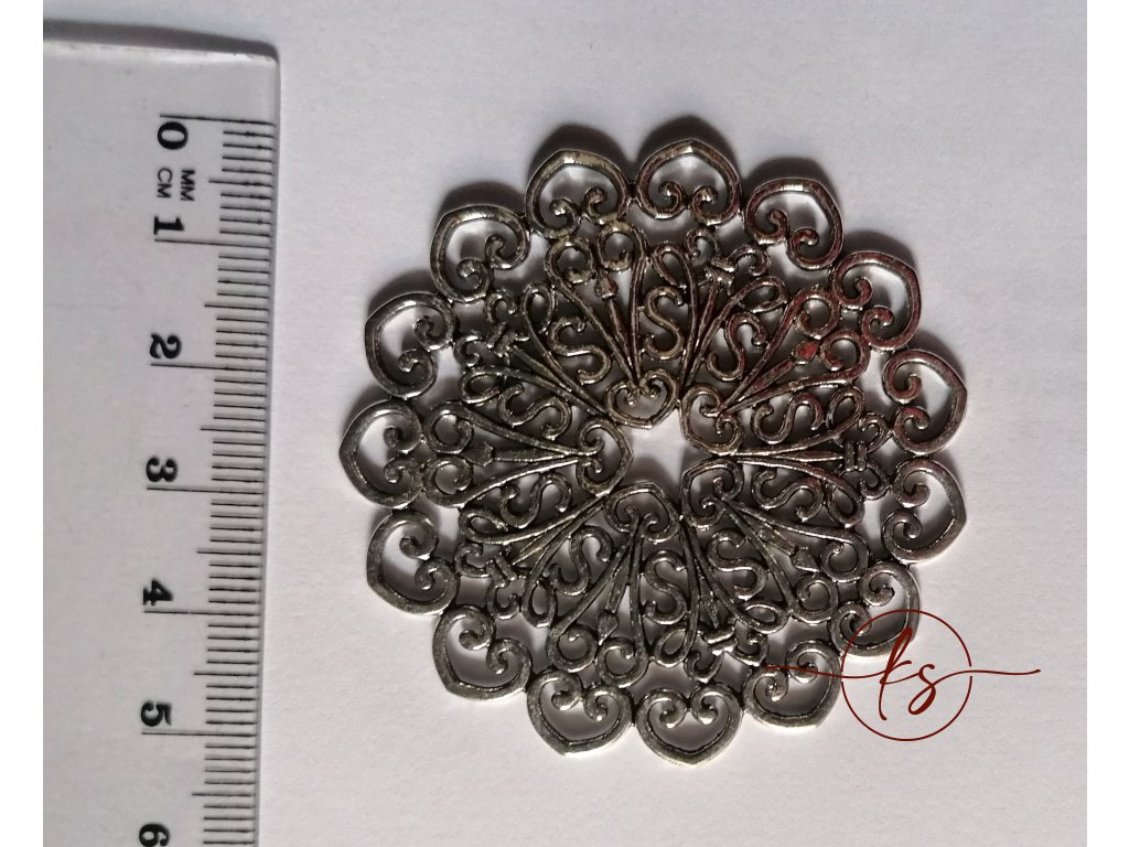 Filigrán / masivní (1,5 mm) kovový výřez květinový 52 mm, stříbrný