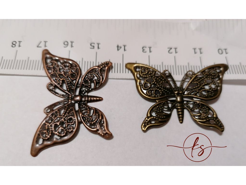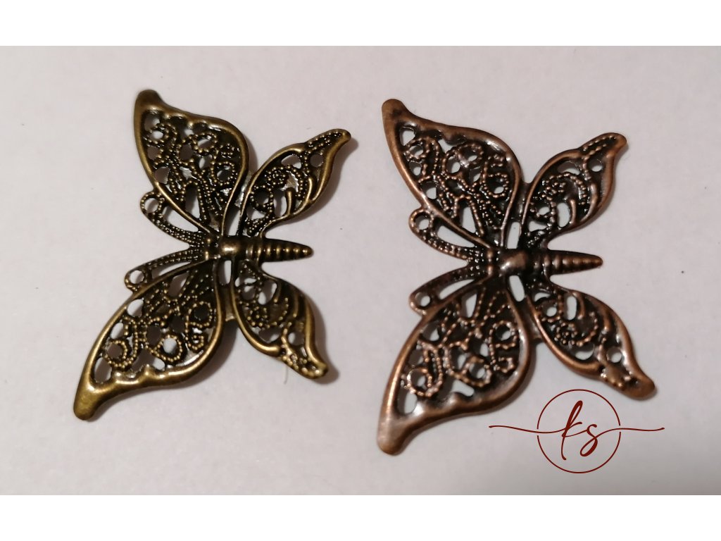 Filigrán motýl malý kovový 39×26 mm, barva: bronz a měď