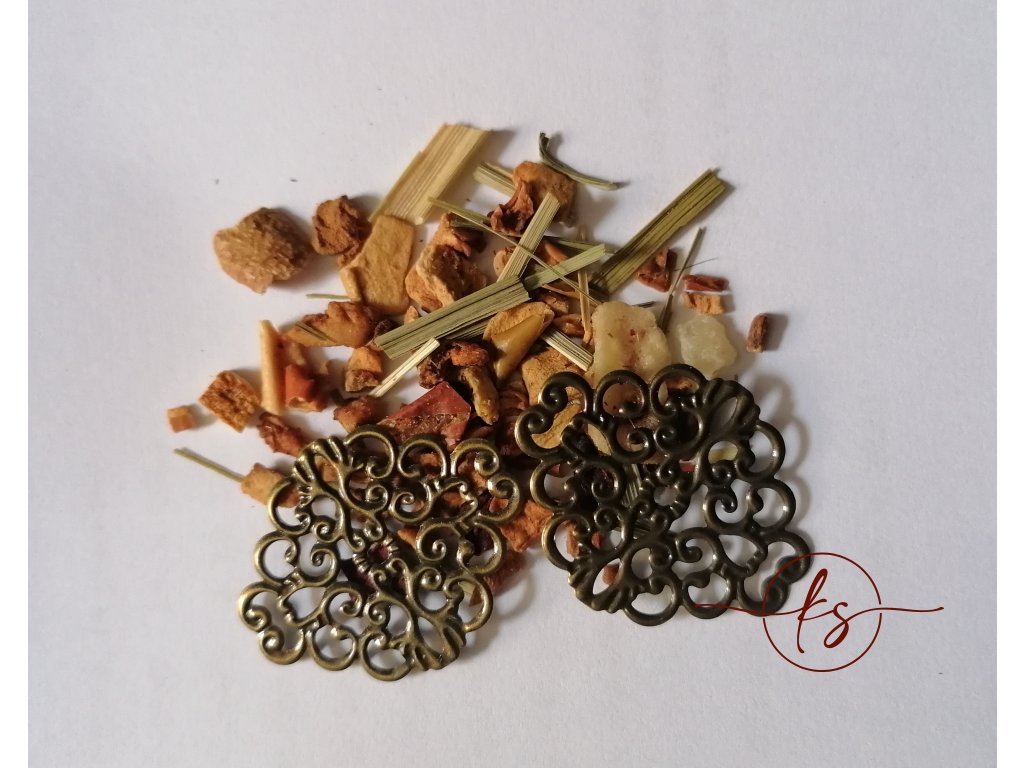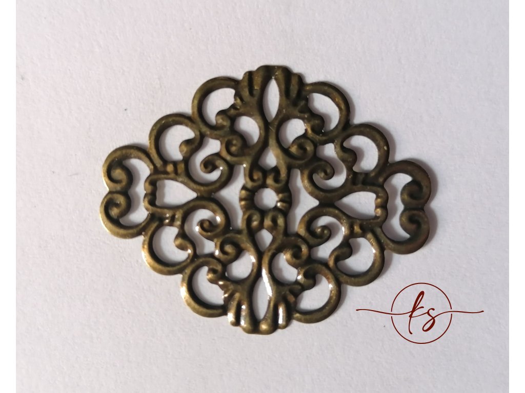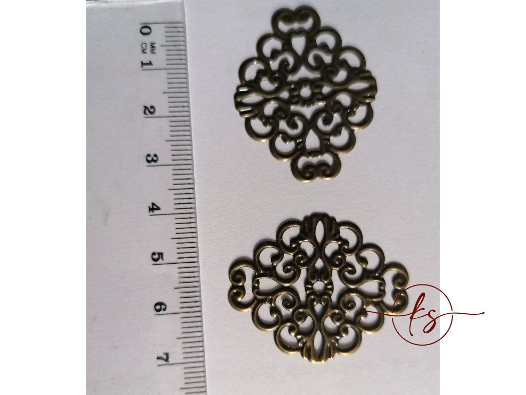 Filigrán ozdobný kovový 37×30 mm, bronz