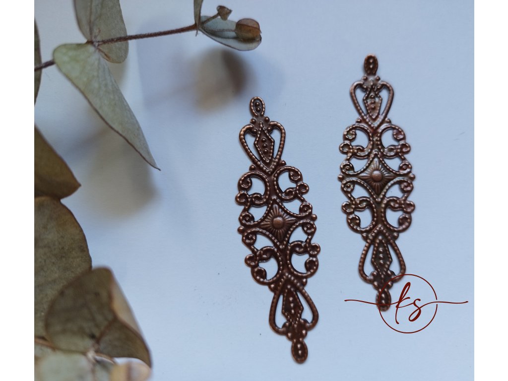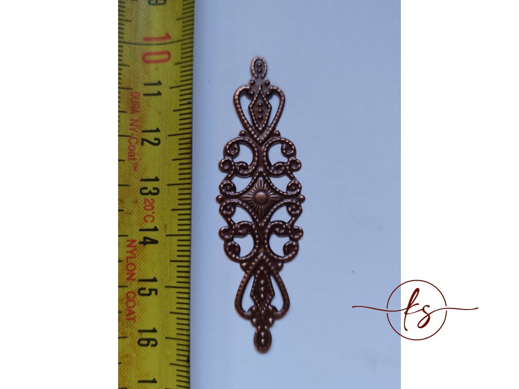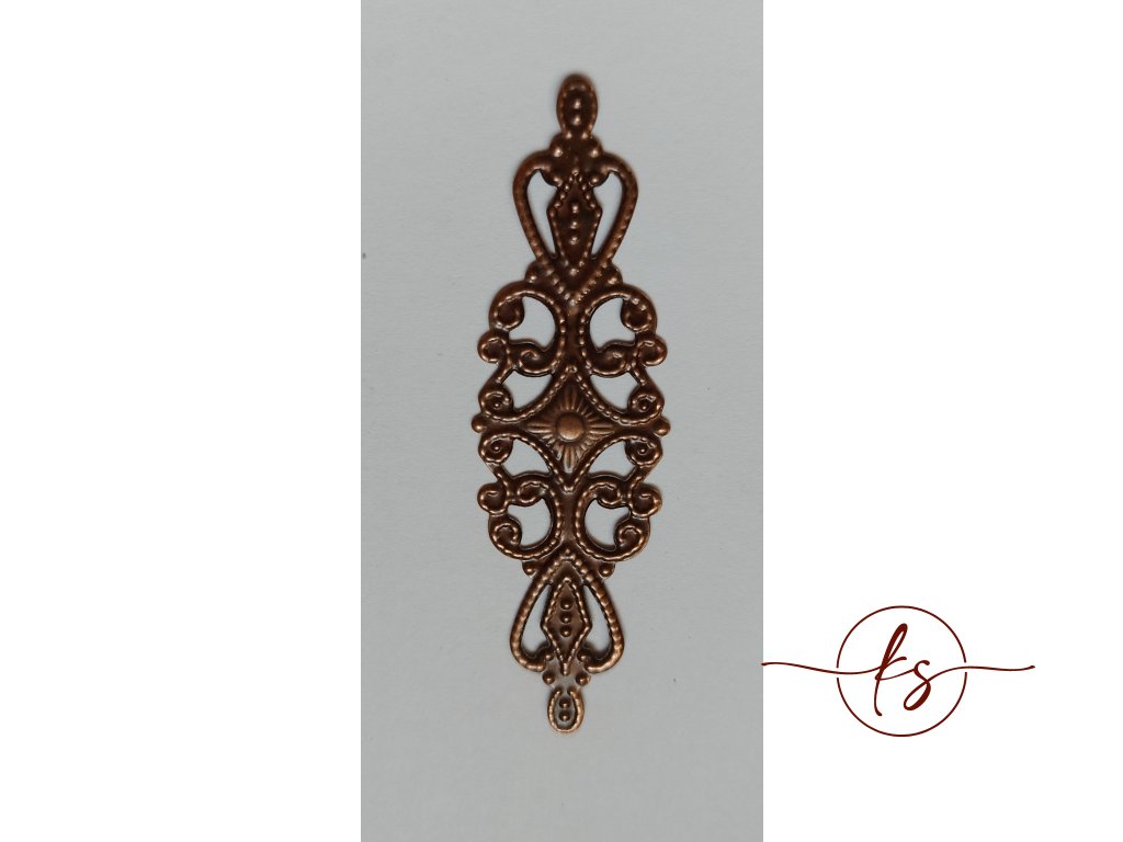 Filigrán ve tvaru vinného listu 65x20 mm, antická měď