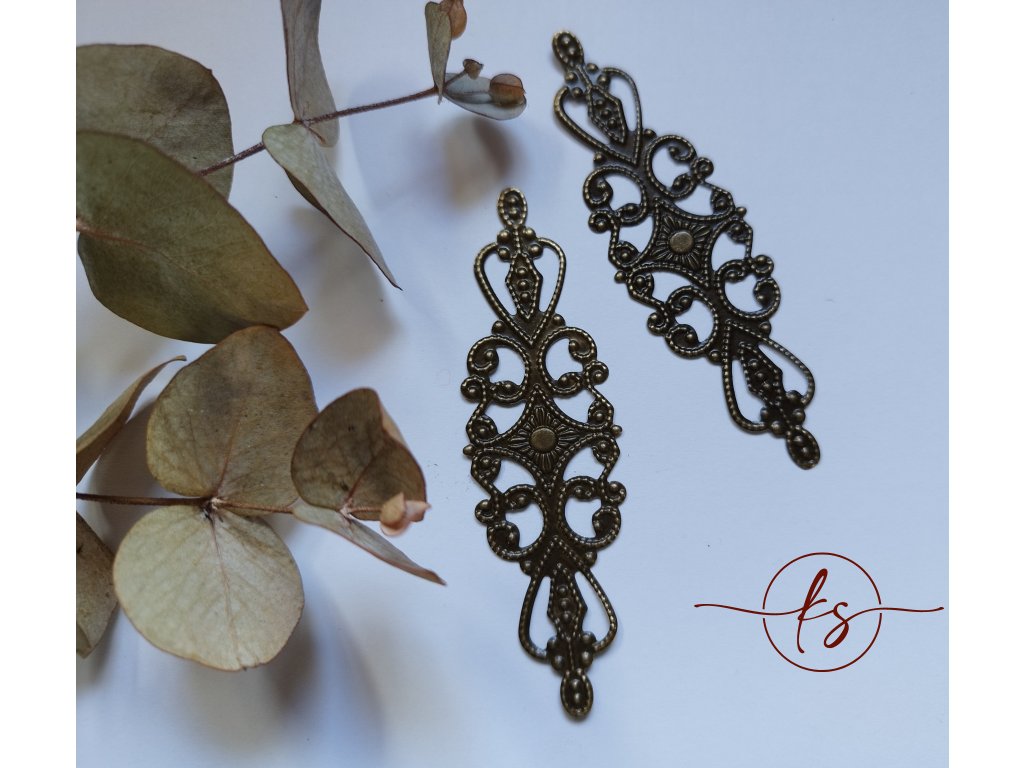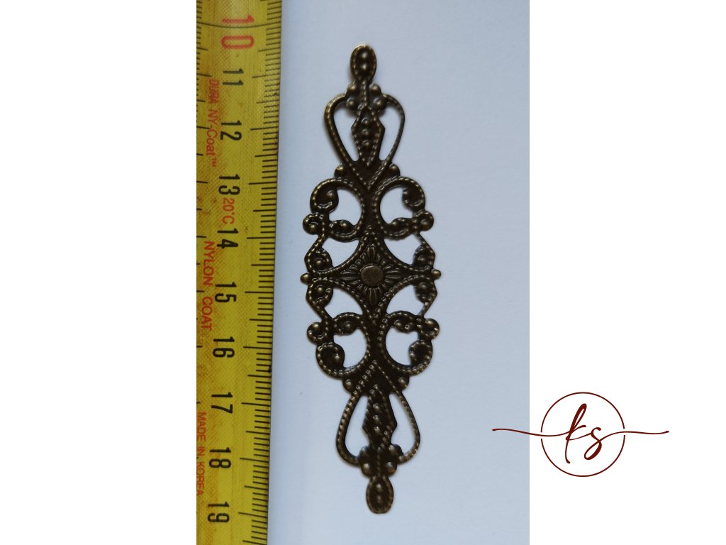 Filigrán ve tvaru vinného listu 92x28 mm, antický bronz