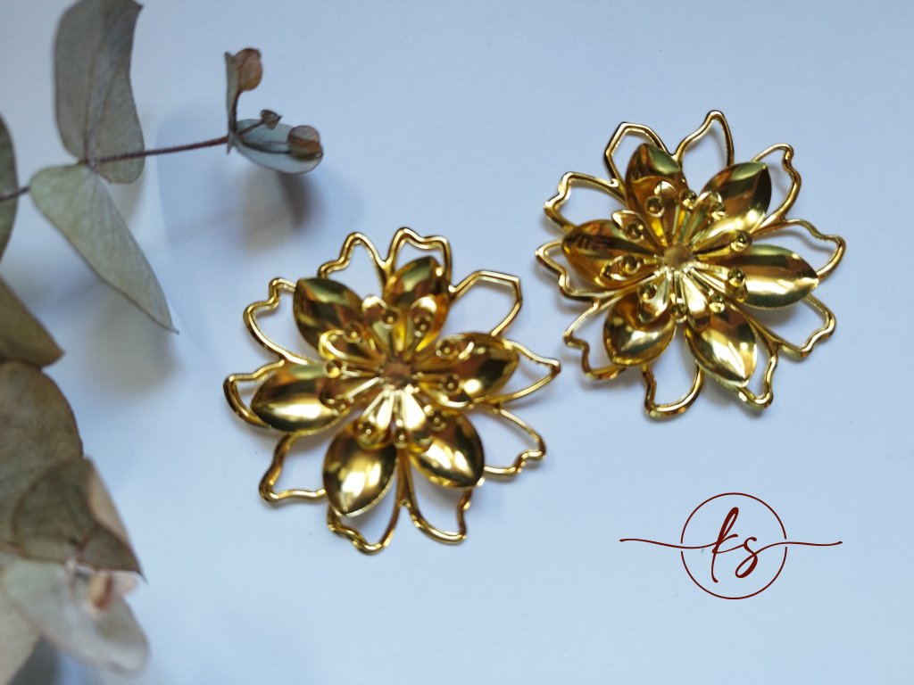 Filigránová vícevrstvá kytička 57x57 mm, zlatá
