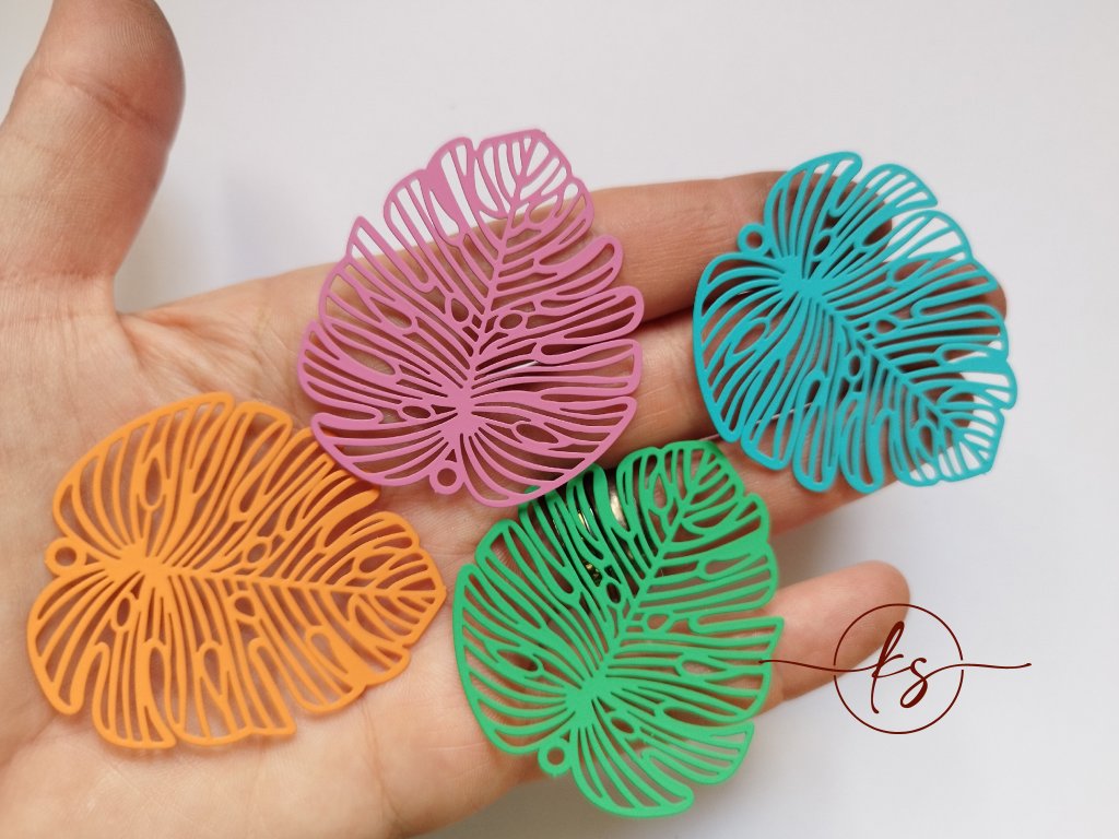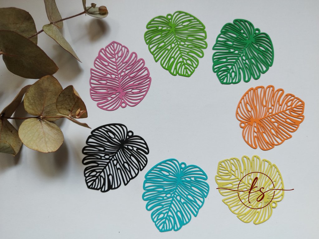 Krásně propracované filigránové výlisky ve tvaru listů, probarvené