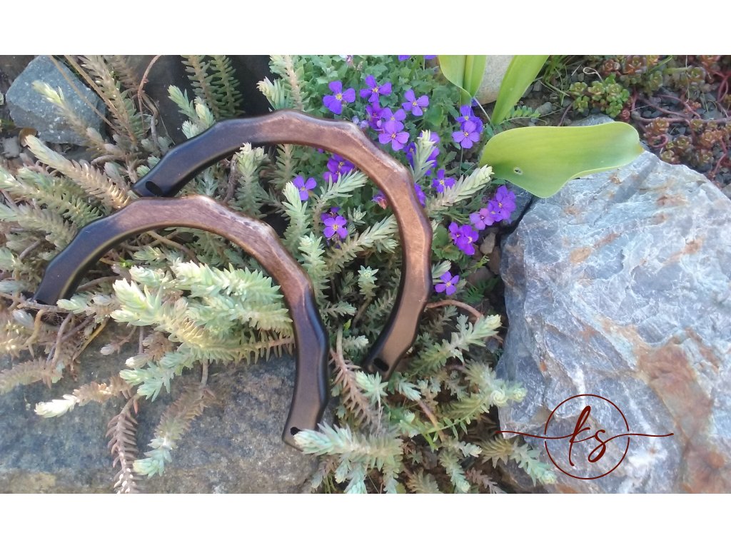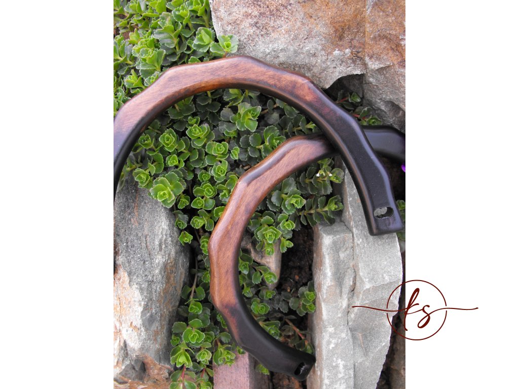 Krásně zpracovaná, dřevěná půlkruhová ucha s vrchním tvarováním dozdobí Vaši originální tašku či kabelku.